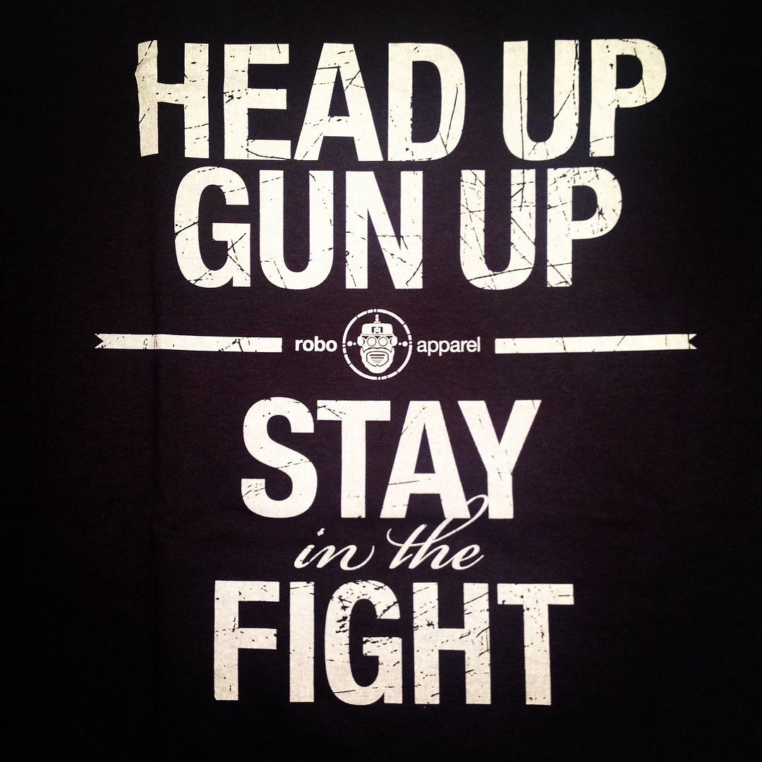 Sincere thanks to Robo Murray. My Head Up, Gun Up T has arrived from Robo-Apparel and it’s like a 100% cotton tactical hug.