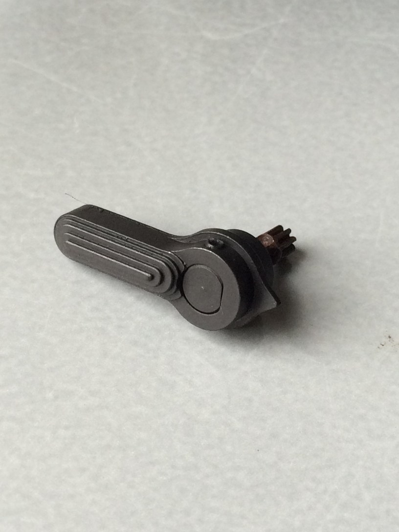 The selector depicted above is the business half of an ambi set. I don’t run an ambi PTW, so I went with just the one lever. You can also see the additional splines, instead of a smooth shaft, in the pic above.