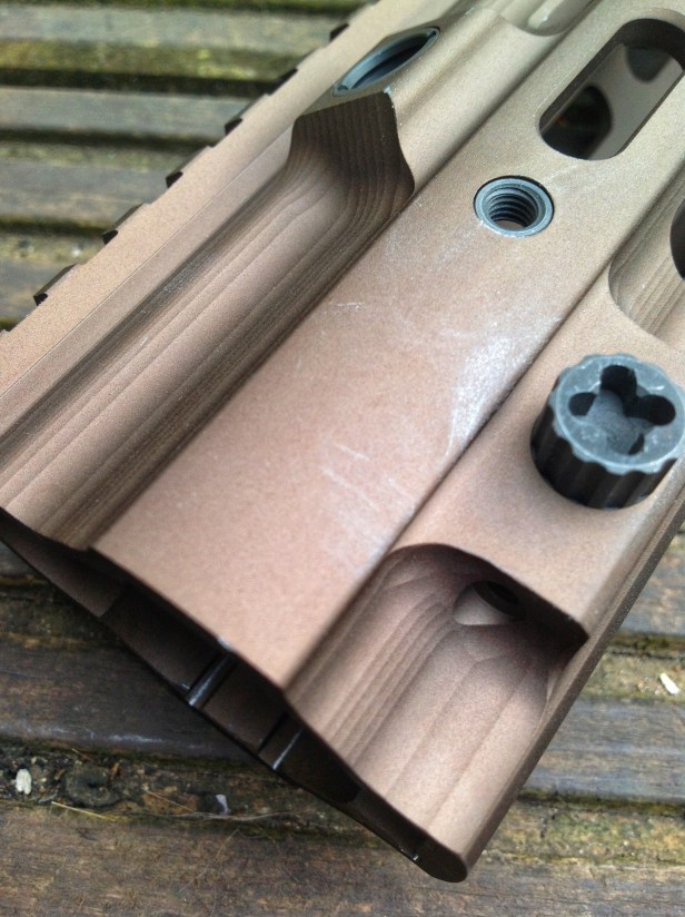 Like HAO’s 416 Quad Rail, when you push the SMR to its limit on the barrel nut, you don’t have to adjust its position to lock the retaining cross-bolt in place. This shows incredibly close tolerances (even the RS sometimes takes a bit of cross-bolt wriggling).