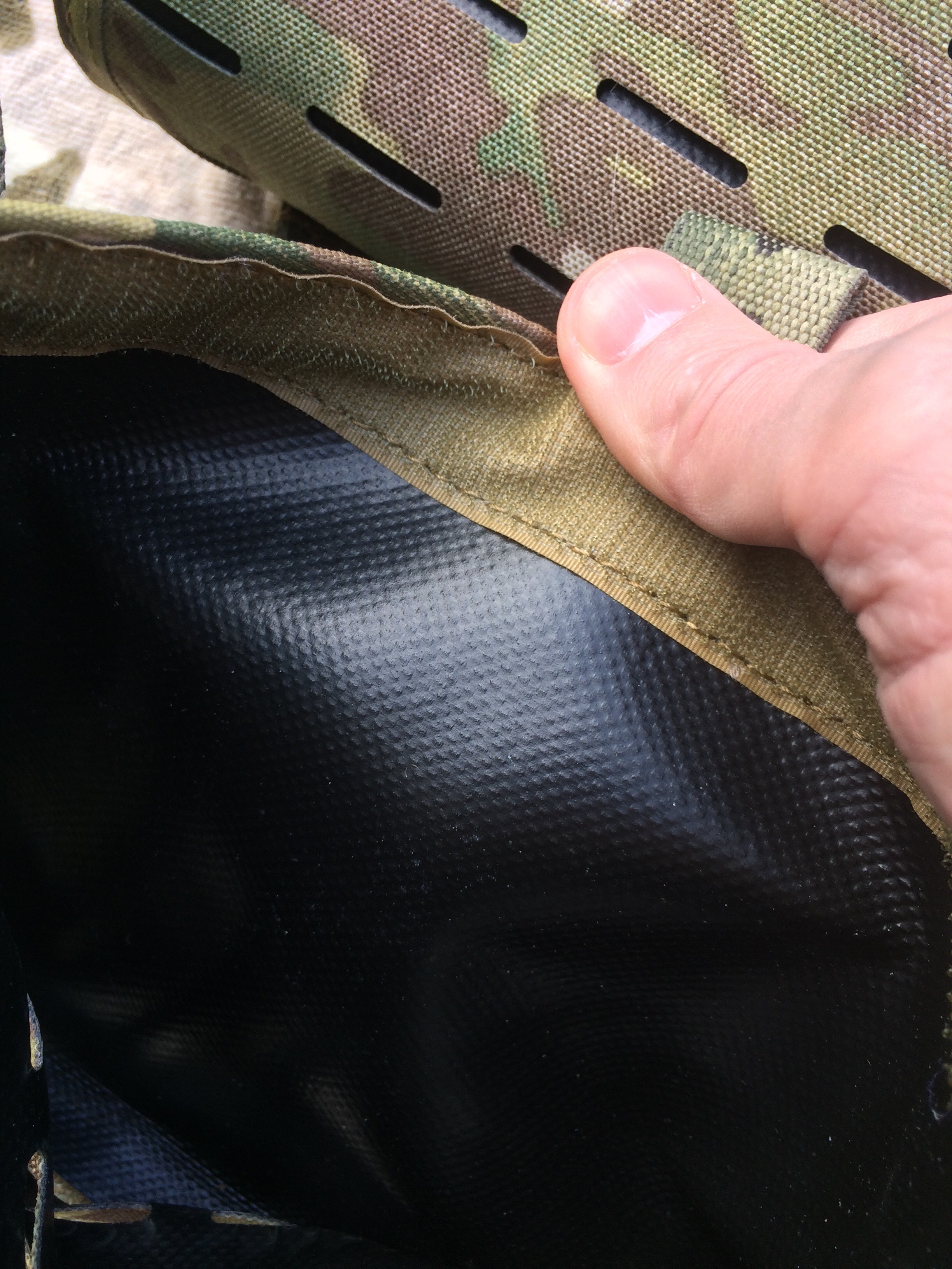 Similarly curious, the 1000D is laminated to a tarpaulin backing. Again, this had me scratching my head. Tarpaulin is commonly used on high end messenger bags, because it’s tough and waterproof, but it’s more common to see Hypalon filling this niche in tactical applications nowadays.