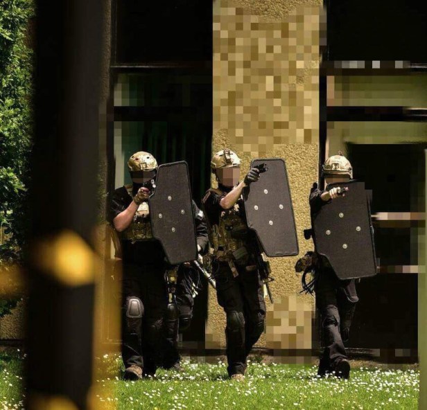 Early in the afternoon, negotiators had been locked in talks with the hostage takers, with seemingly little progress being made. Police OP teams then reported hearing a gunshot and witnessing a body being thrown from a balcony. At this point, it was abundantly clear that nothing more could be done; the time for talking was over. Control of the operation was handed over to Jay W, who gave the assault teams the order to ‘stand to’ in preparation for an Emergency Response assault. With this, all assault elements loaded themselves into their designated vehicles before proceeding in convoy to a staging area, around 200m short of the target location. Once there, we debussed and stacked up in our callsigns, with SF aiming for the north entrance of the building while police maintained the perimeter around the west entrance. It was a short walk to the target through some dense woods, so we made our way to a wall a few metres away from the doors of the north entrance. The last few guys closed up the rear. We kneeled, and waited for the signal to go.