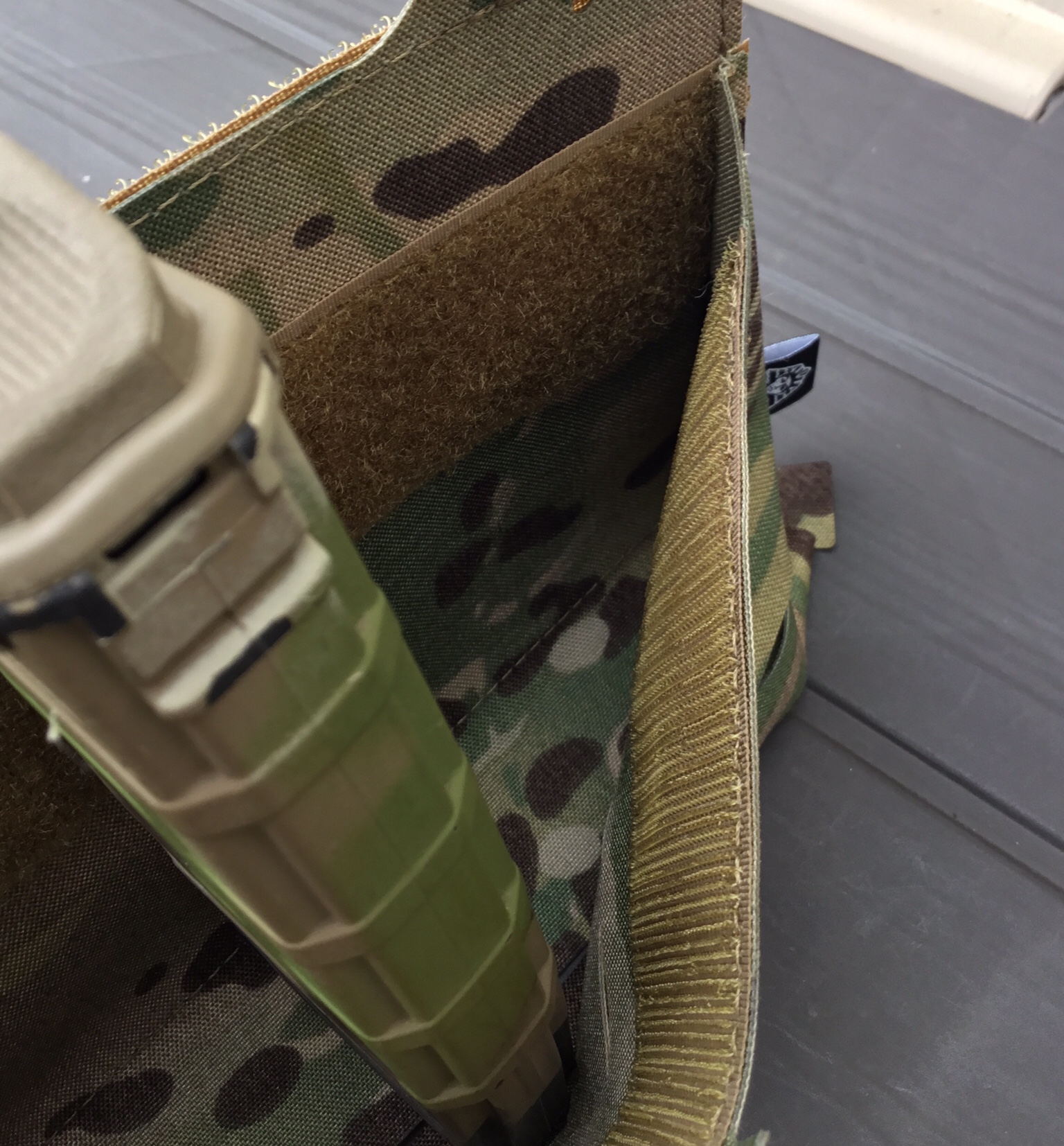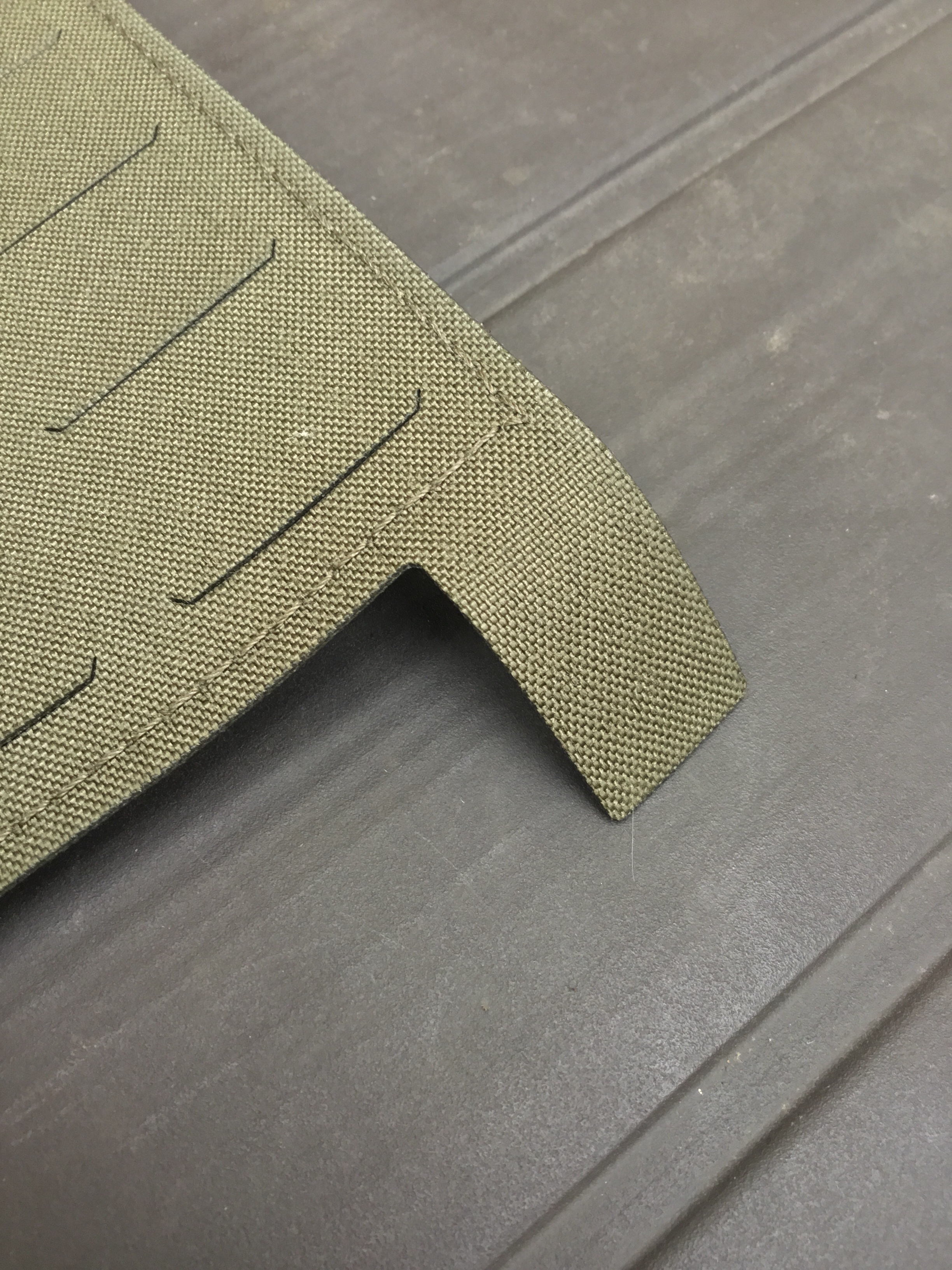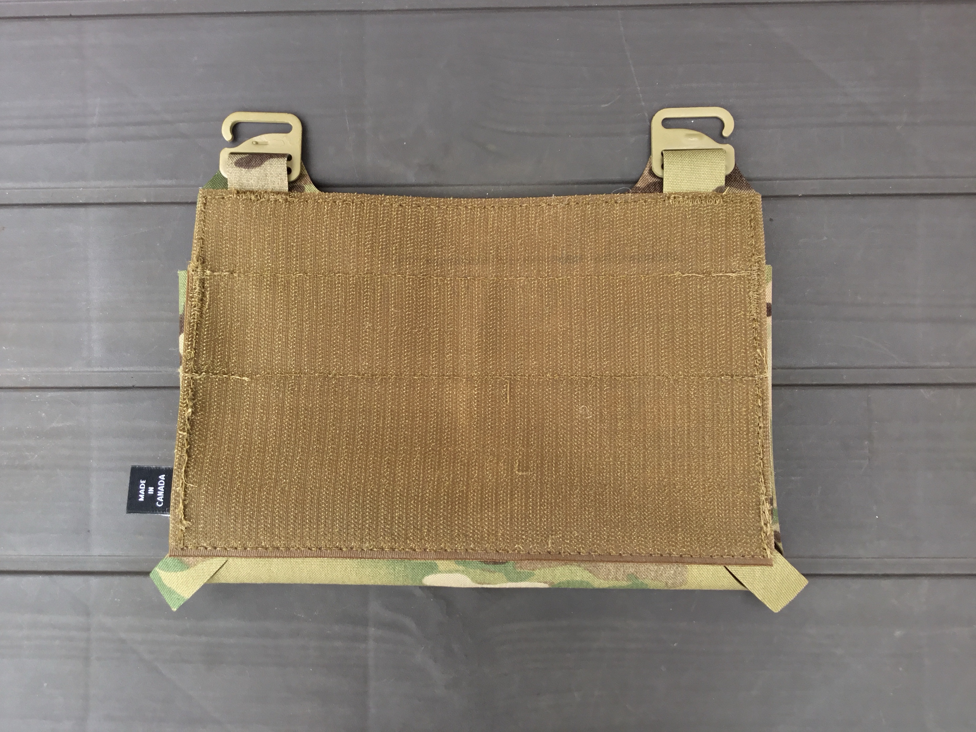 Tabs are exhibited at the lower corners. This is so the panel can be more easily peeled away from the loop Velcro on the rig body, when it’s time to change things up.