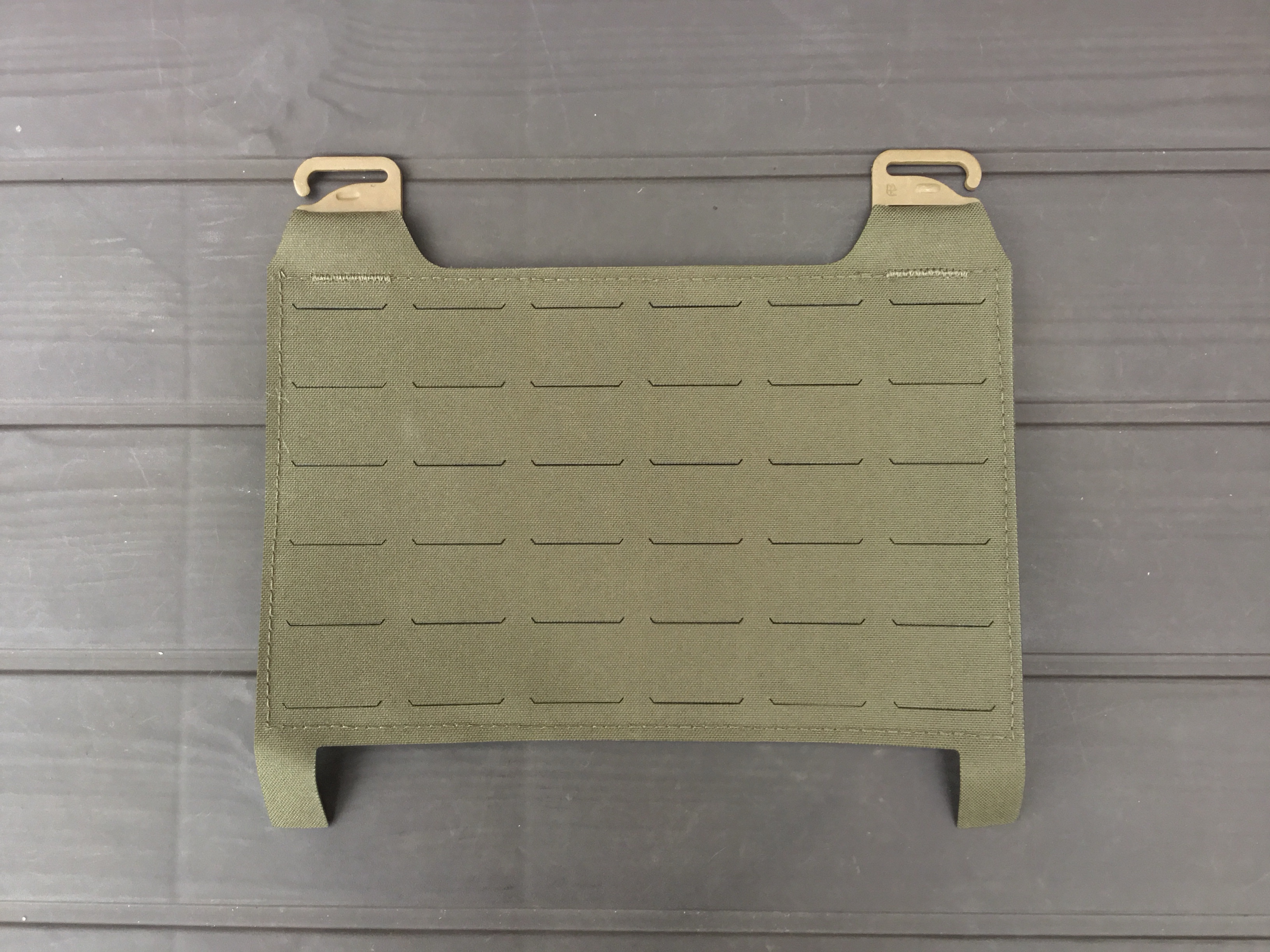 Tabs are exhibited at the lower corners. This is so the panel can be more easily peeled away from the loop Velcro on the rig body, when it’s time to change things up.