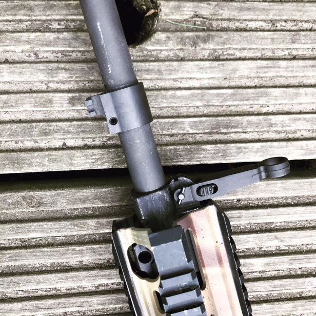 Now, a detail often overlooked with N builds is the gas block. The Norwegian-spec 416 has a long, adjustable gas regulator with no sling loops. It does not feature a bayonet lug; that’s further down the barrel. I decided (prior to HAO releasing their N-correct gas block) to remove the sling loops and bayonet lug on the milling machine my father and I created out of an old pillar drill.