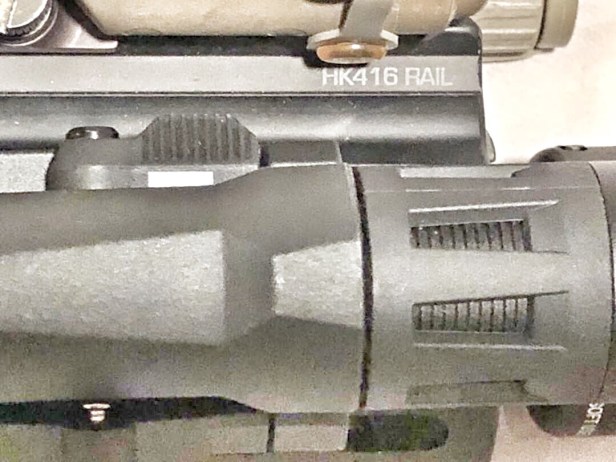 The rail is much easier to grip than the original HK416 rail. That said, having to add those rail sections to bolt on accessories explains why the MLOK system is everywhere and this is not.