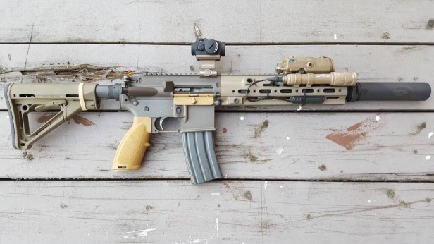 I was looking through Tan Rifle’s pics of his excellent real steel CAG HK416D build; ostensibly to gauge how good a DDC Geissele Aimpoint Micro would look with a black T2 or H2.