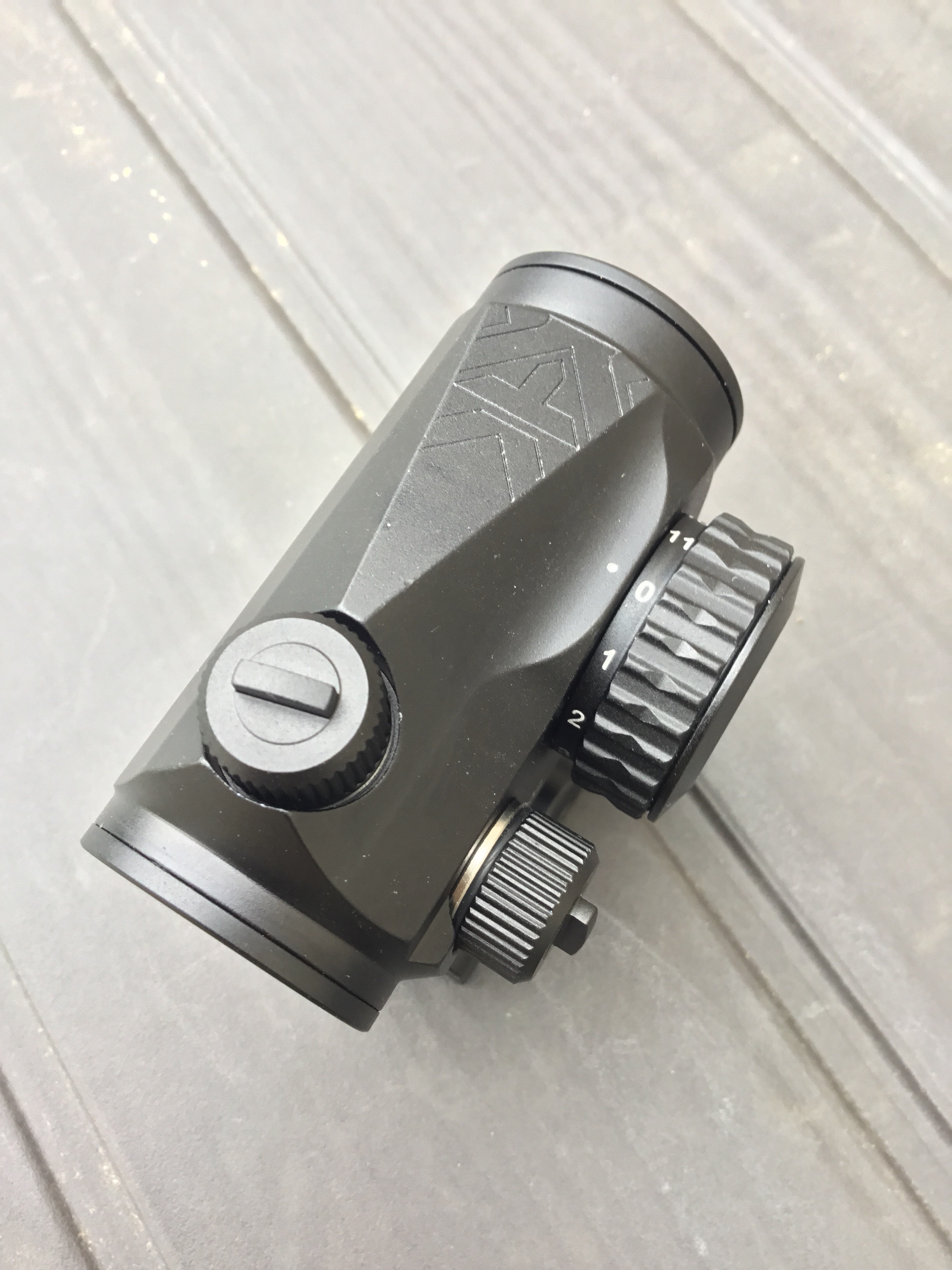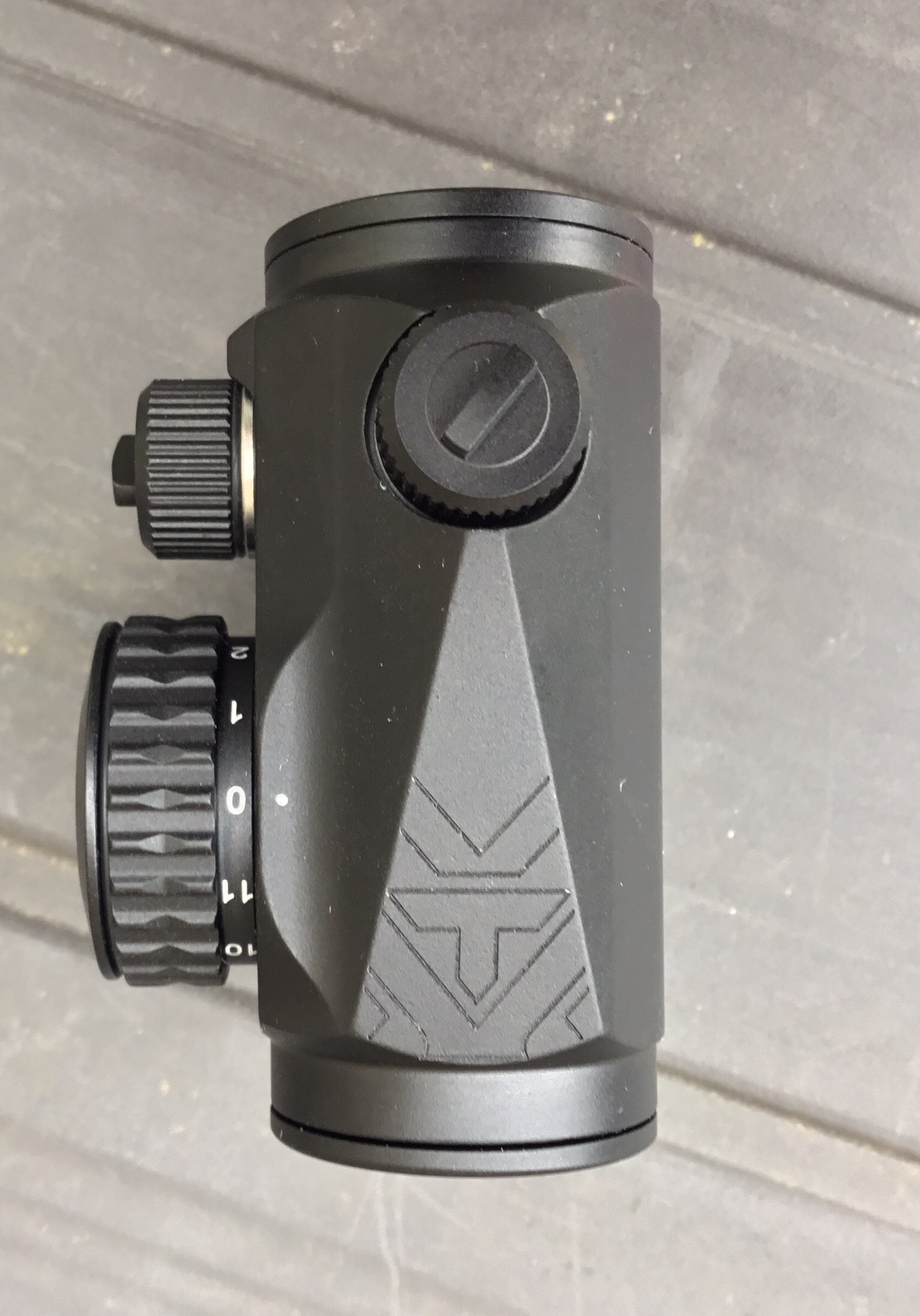 Like the T1, the red dot intensity control also doubles as the battery housing. The intensity control exhibits an aggressive grip profile and very positive click-adjustment. Settings are indexed from zero to eleven (that’s right, it goes up to eleven!)