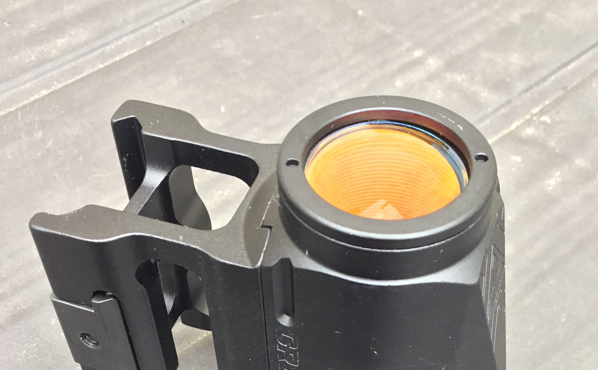 As should be the case, the Crossfire’s objective lens is angled so that it is perpendicular to the red dot emitter within the optic. That’s one I’m sure customer service employees at optic companies groan at, “Why is the lens angled funny?”