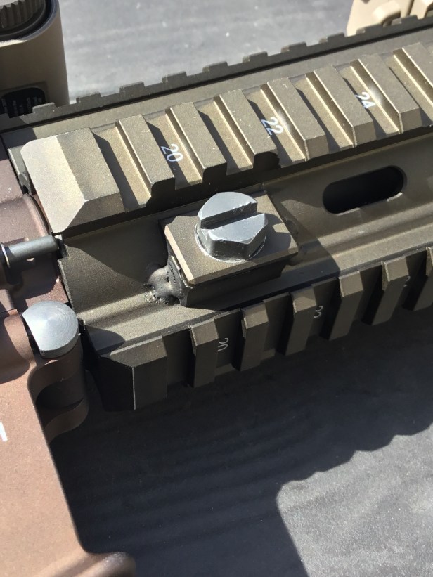 Having said that, it’s rather satisfying to use; although that wears off pretty fast. You realise the charging handle catch is eroding your lovely RAL8000 finish, and biting into the receiver itself. Hardened steel > aluminium (even 7075T6).