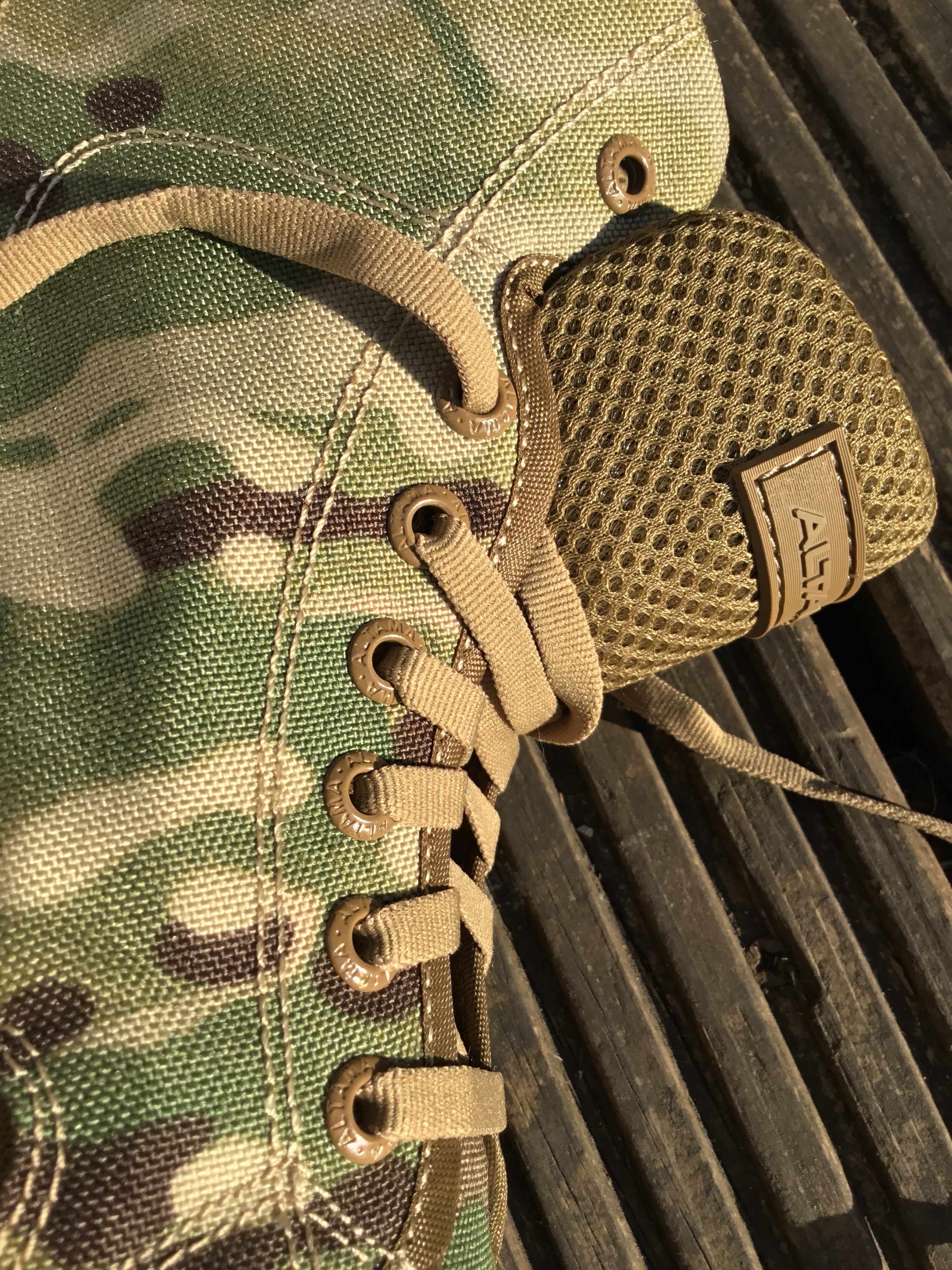 The tongue is padded and exhibits Altama branding. It also limits grit ingress in the way it’s attached to the shoe via gussets.