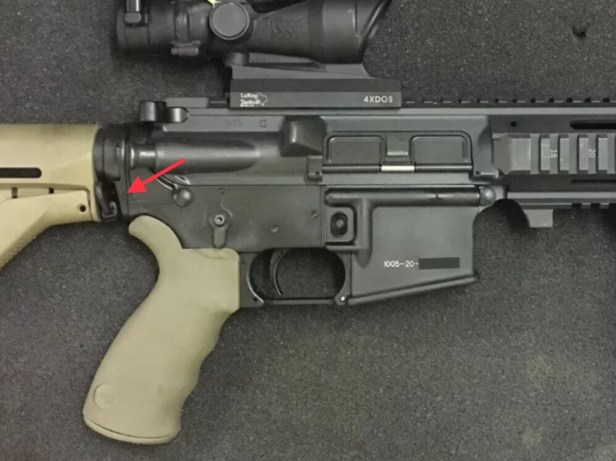 In addition, the sling plate at the rear of the receiver was identified as a Magpul ASAP QD: