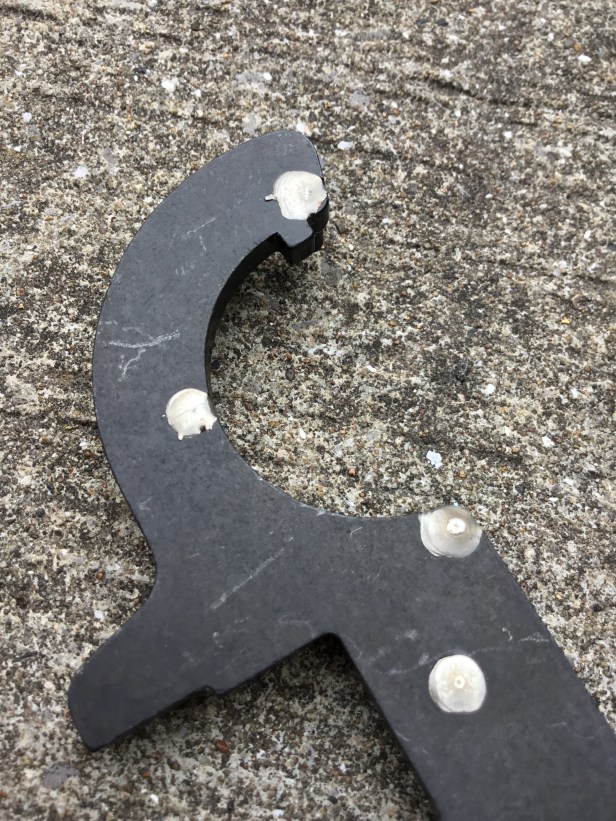I’m told it’s made of tool steel and laser cut, but the welds on the reverse don’t make you think ‘quality’.
