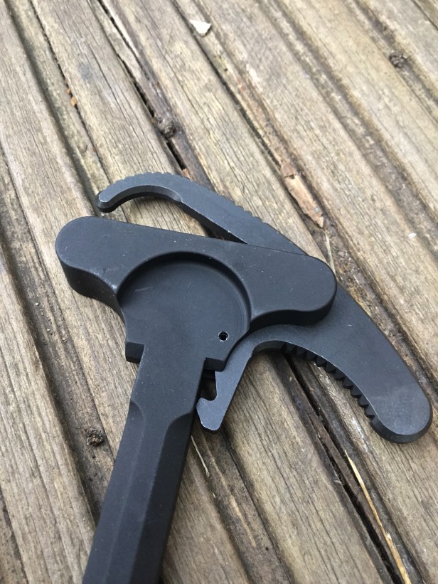 For now, I decided to do a mash-up of RS Colt charging handle body and HAO latch. It’s not the easiest swap, because the latch is under pressure from a strong spring (I used the RS one), but if I can do it anyone can.