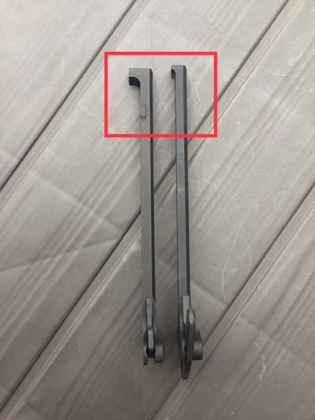 - A smaller ‘L’ hook at the barrel end of the handle means you can no longer use it to drag the cylinder out of the PTW’s receiver
