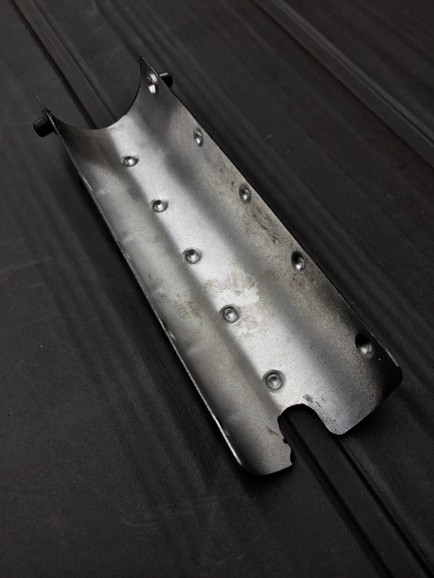 It slots into a pre-machined bracket and can be secured either using glue or by smashing a punch into the receiver so that it deforms around depressions in the notch piece.