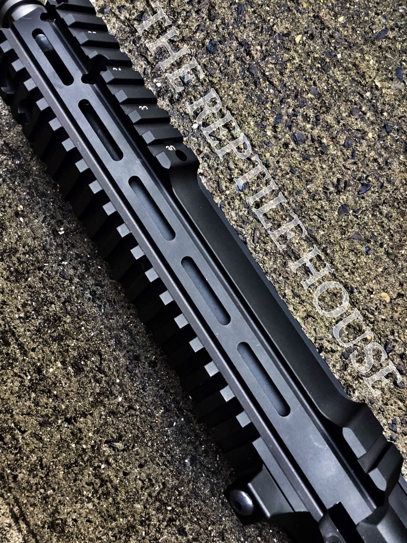 My upper receiver clamshell vice block doesn’t fit the IUR perfectly, but well enough for it to be held securely while barrel nut tightening took place. Naturally, during that time I had a barrel/hop group and cylinder inserted in the upper, as reinforcement against the clamping pressure of my Black & Decker Workmate (doubling as a vice).