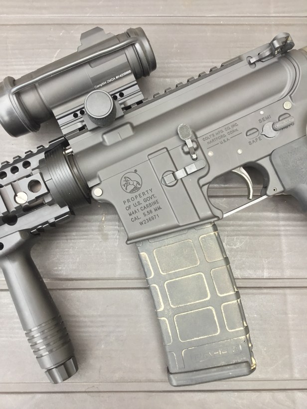The biggest giveaway once mounted is that the grip pattern on the replica item isn’t as deep as the Colt Canada model.