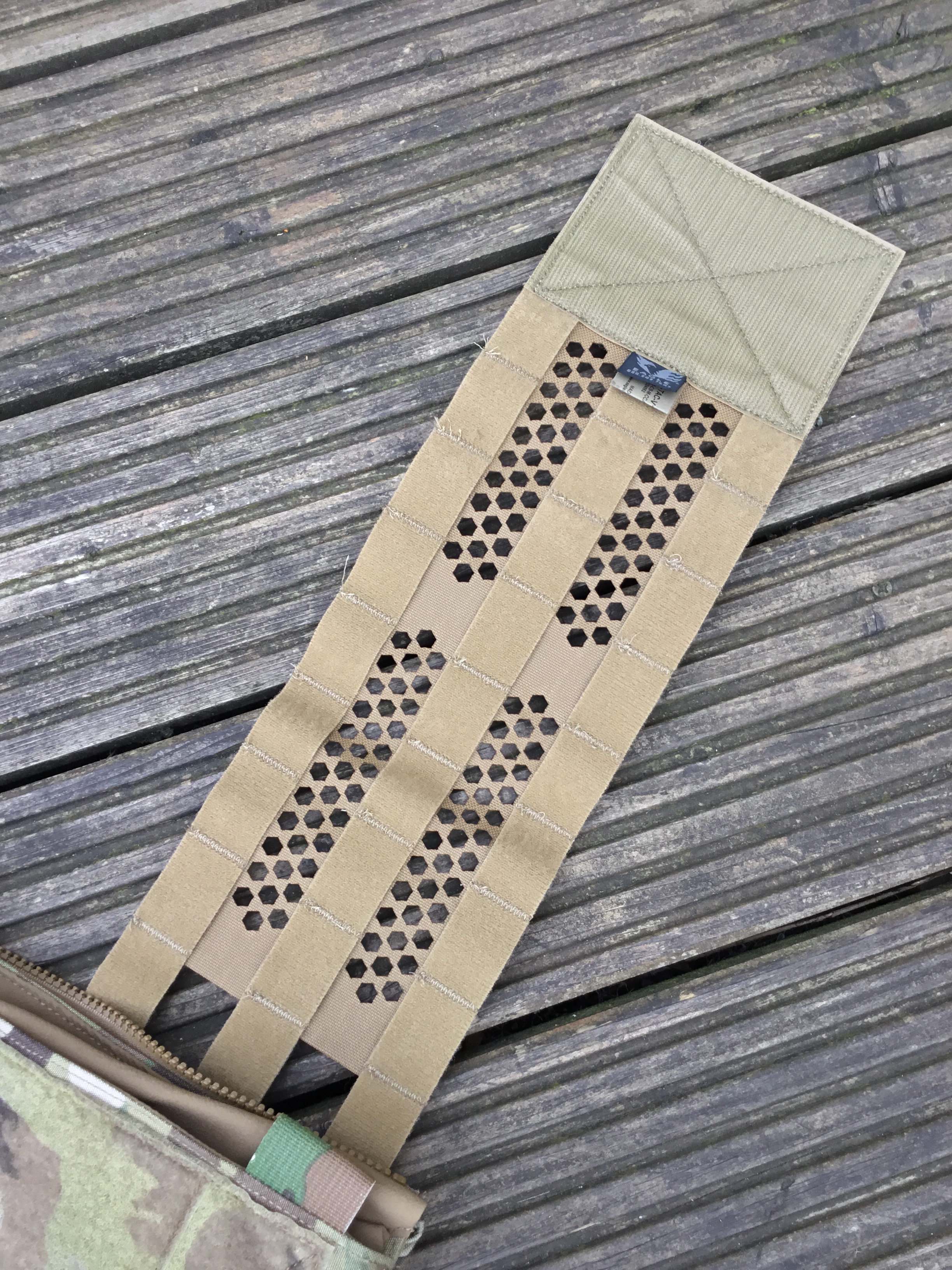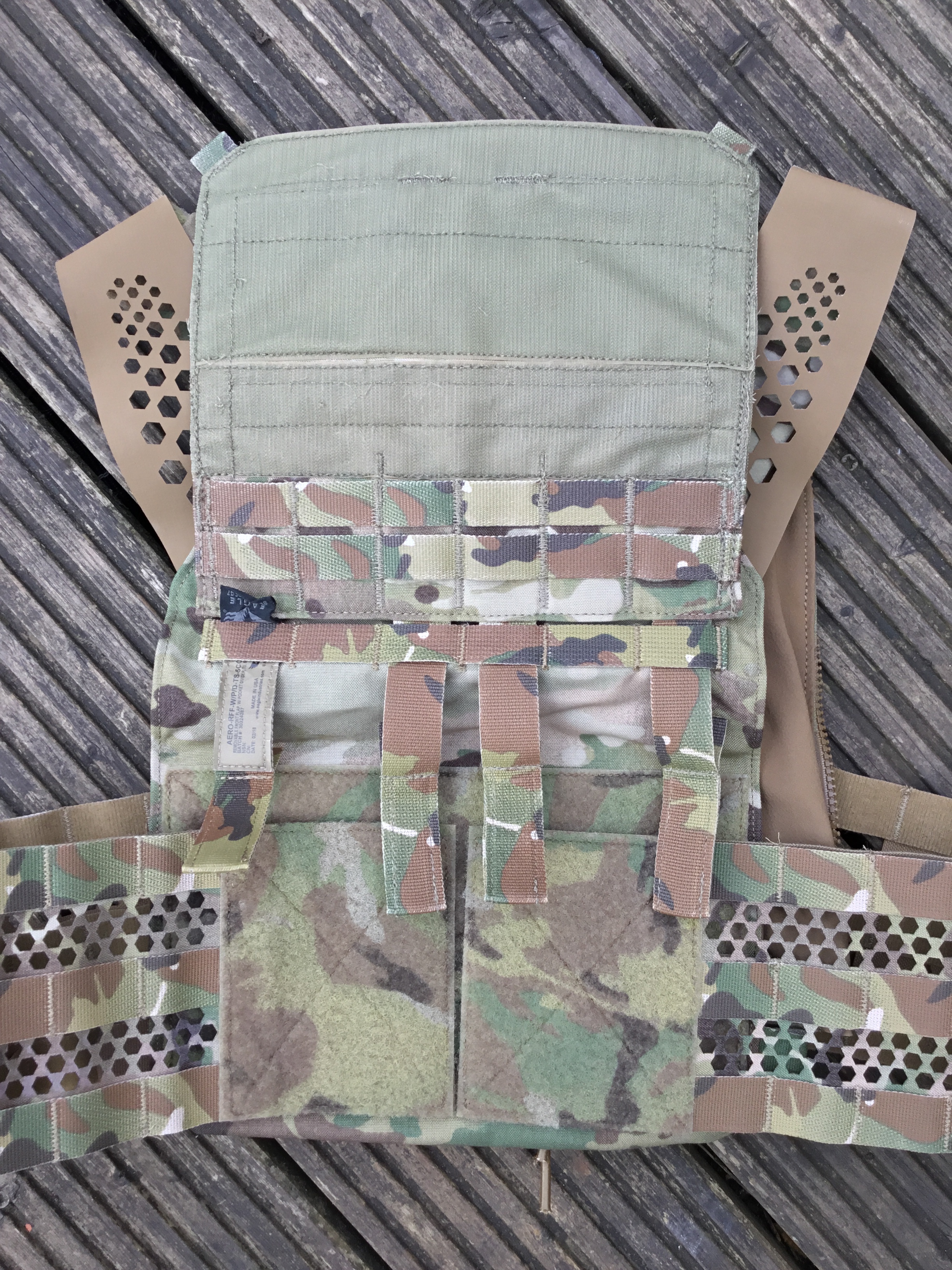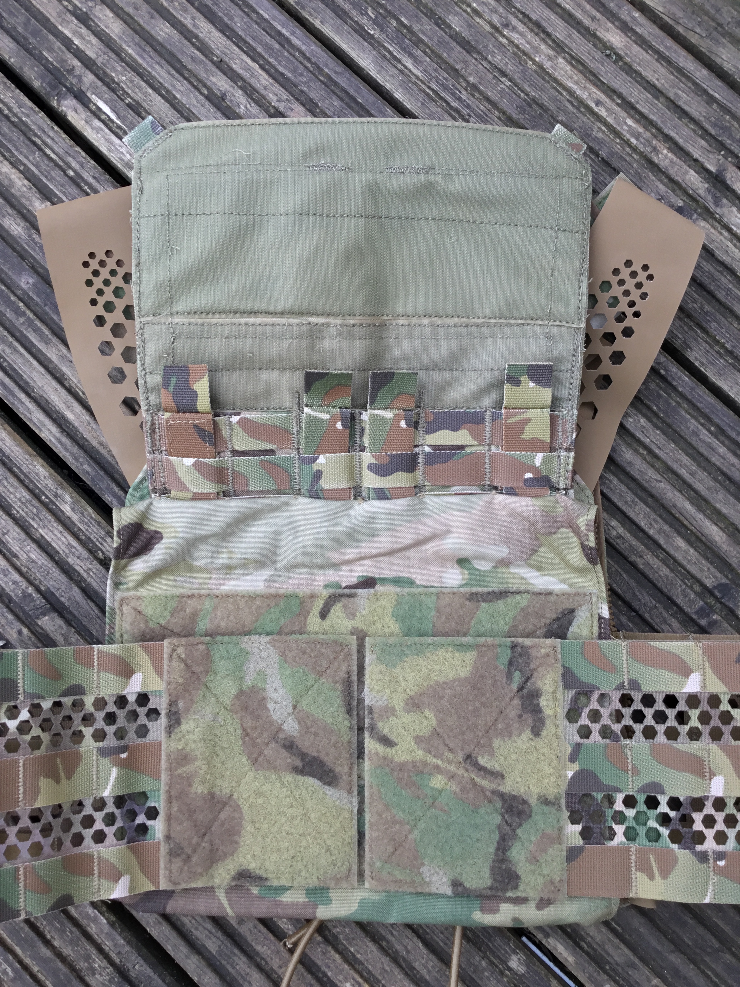 Lastly, the front flap. This is not compatible with the Crye system, because it sensibly uses standard PALS spacing: