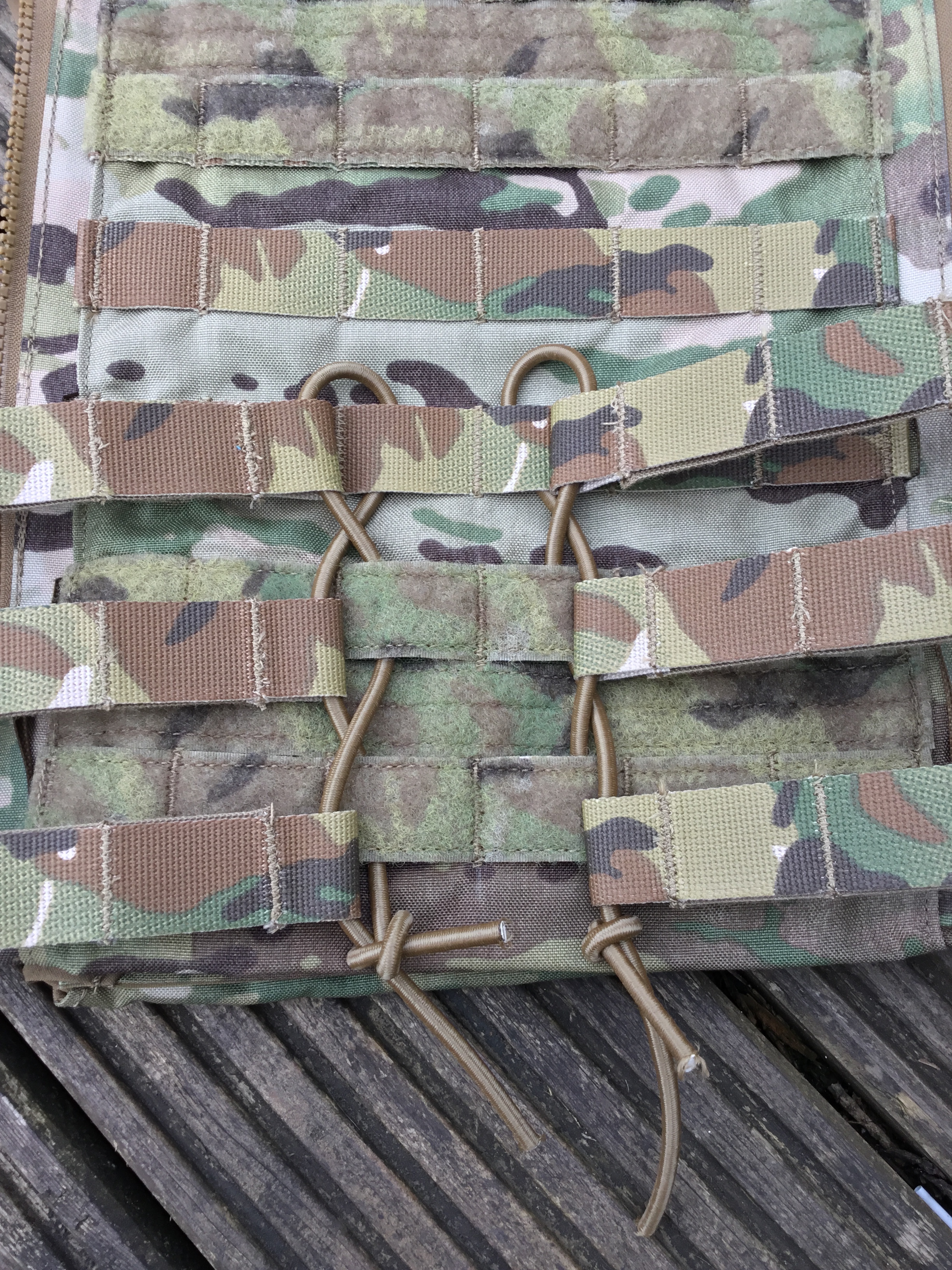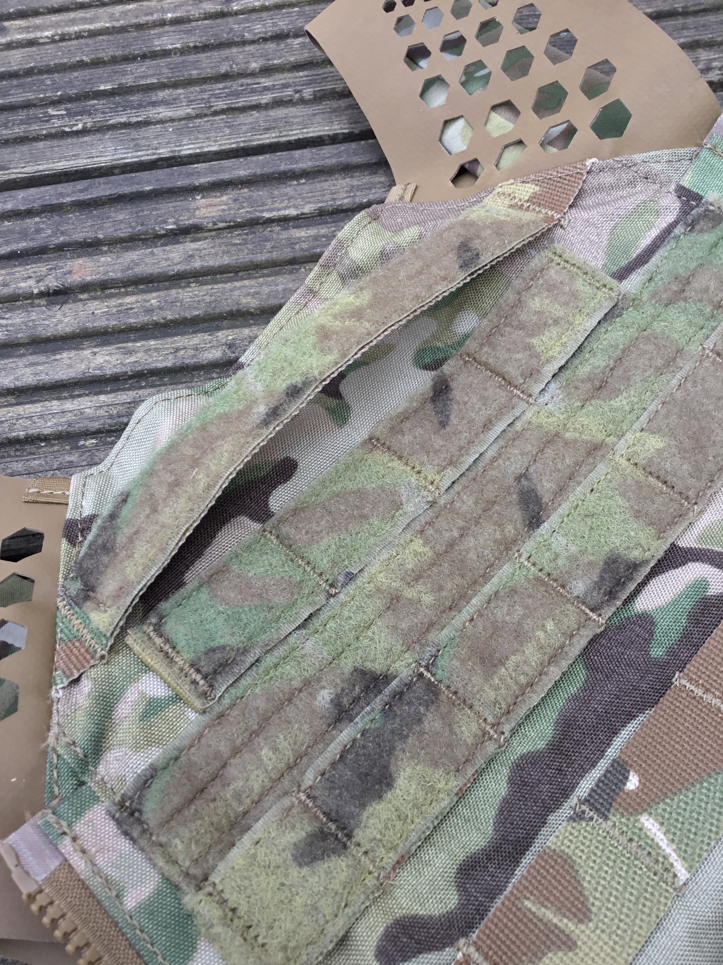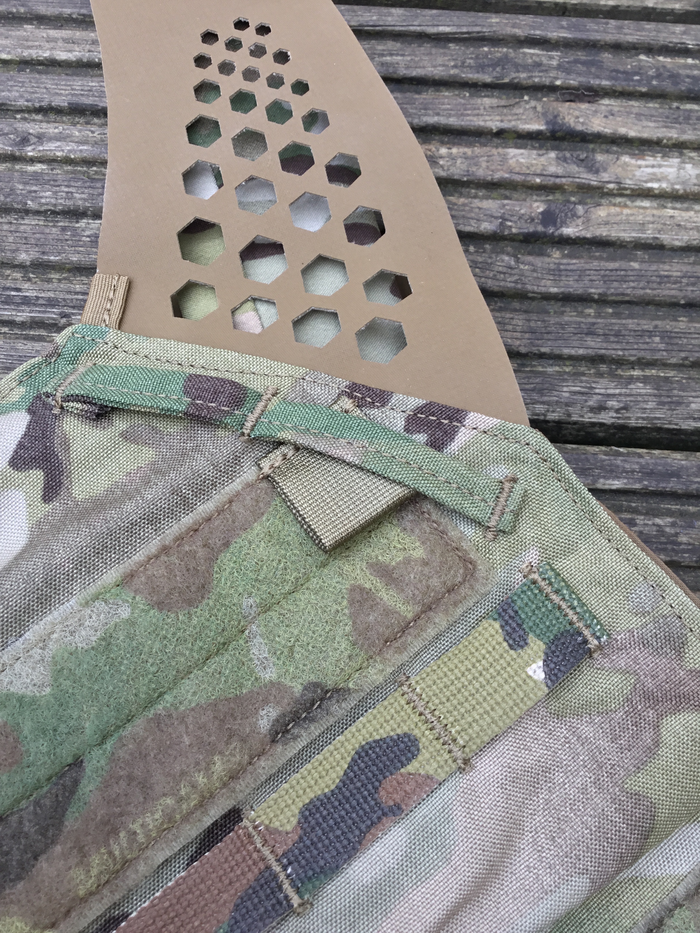 Lastly, the front flap. This is not compatible with the Crye system, because it sensibly uses standard PALS spacing: