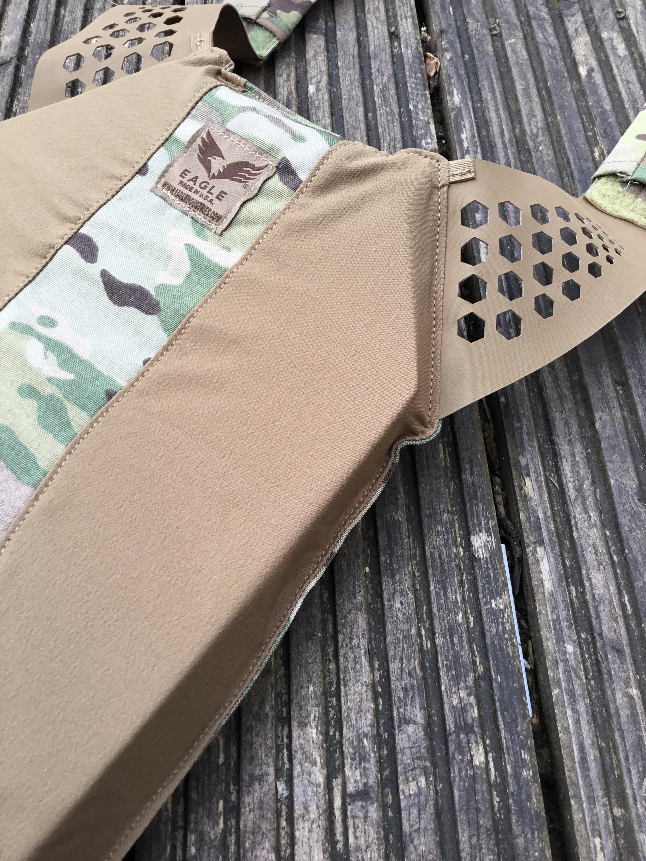 The Tactical Ultra Low-Vis Plate Carrier (ULV) presents with front flap attached and those hexagonal voids drawing the eye: persuading the open-minded observer that maybe Eagle has wrenched something new from this classic form factor.