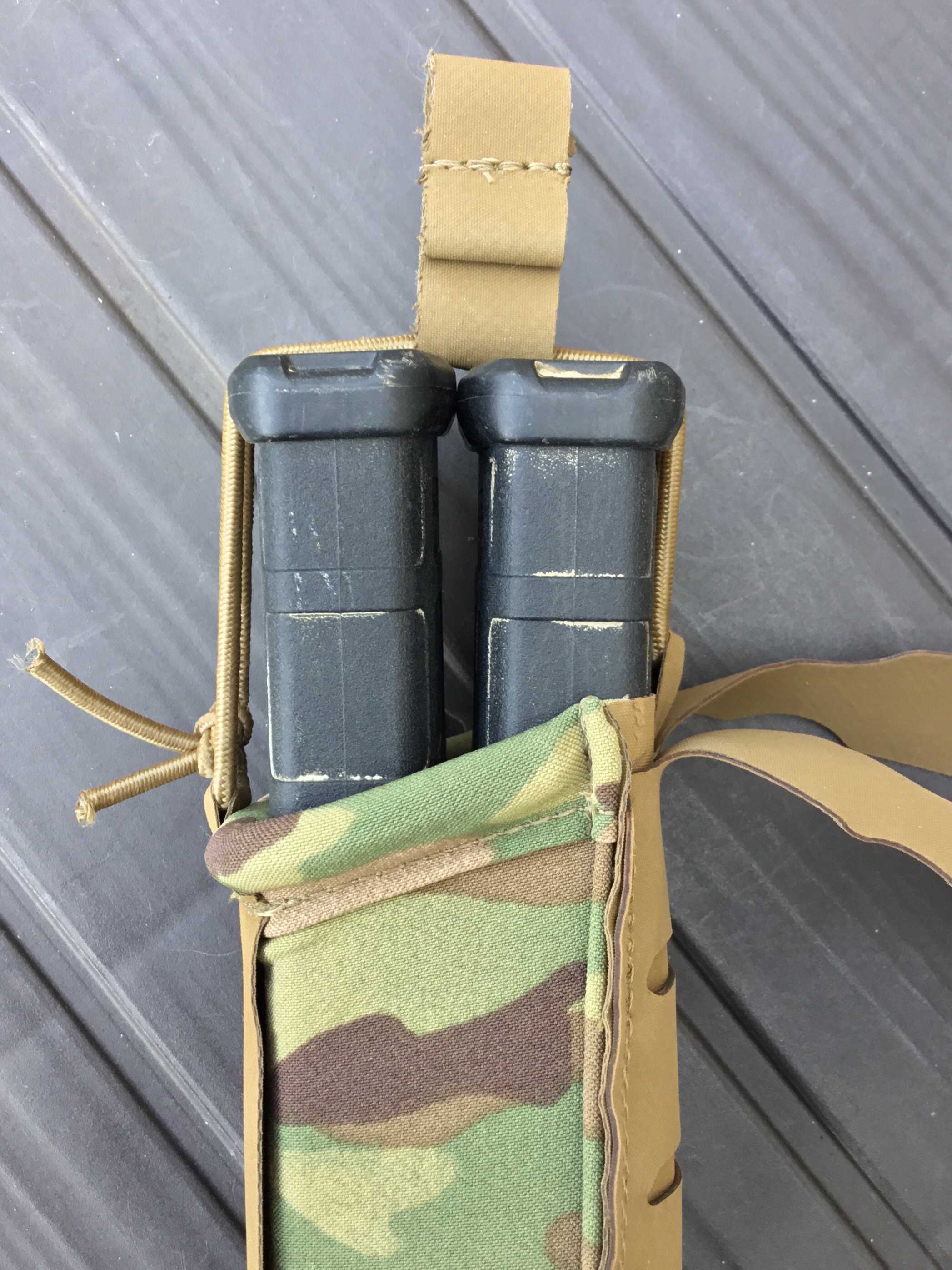 There’s a bungee and tab up top, however, to keep the mags inside the pouch. This is required because the compression from the Tweave isn’t enough to keep two mags in situ – let alone one mag. The tab is also composed of HANK.