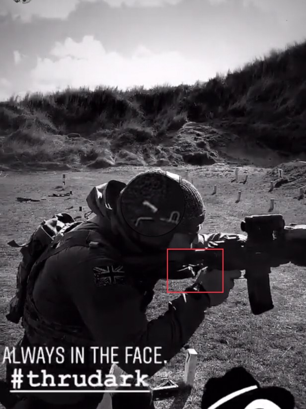 From a video posted by the high end apparel brand ThruDark, he took a still which appears to show a Magpul Paraclip attached to what many assess to be an SBS L119A2.