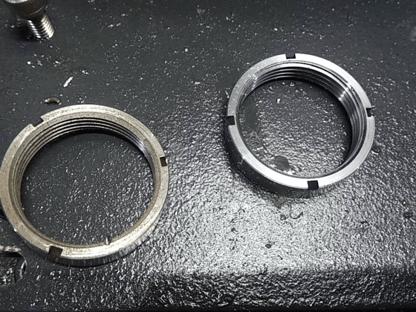 A contemporary Colt castle nut is shown below, with an RS Colt Canada receiver extension nut for comparison.