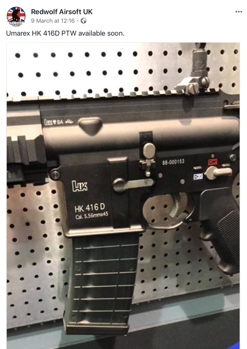 I totally missed this announcement from Redwolf U.K., about a new Umarex licensed HK416D PTW.