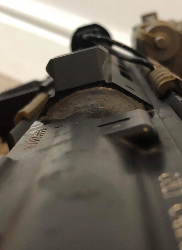 Firstly, to fill in the square on the left hand side, mix some of your miliput very well for 5 minutes, plug it in the gap and press down to make sure you fill all areas of it. You should have quite a bit of excess miliput at this point, and this is fine. Do not worry if you are a GBBR user and miliput starts to go under the rail either, this will be corrected shortly. At this initial stage you don’t need water either, you don’t want it getting trapped underneath and not creating a proper seal between the miliput and the receiver.
