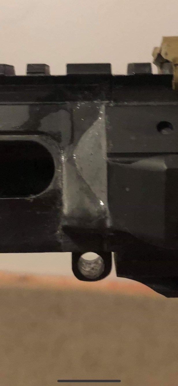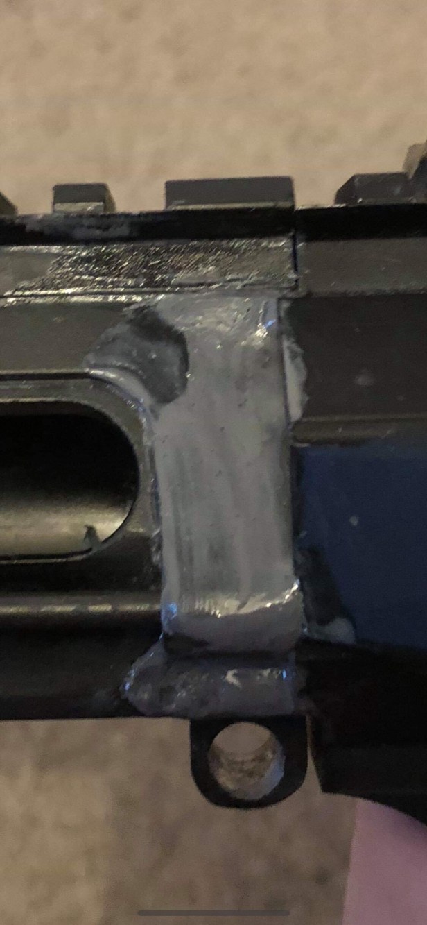 Once this is done it is time to move onto the bump. This can be hard to get right as you need to smooth it out in a few directions. The easiest thing to remember is smooth it from the receiver to the top of the rail – just turn the upper around instead of working around it.