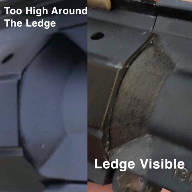 There are a couple of different angles where this needs to be flat. Directly on the side of the receiver it needs to be smoothed out as this is where it will be noticed the most underneath, so you create a sharp line running from the receiver to the rail itself.