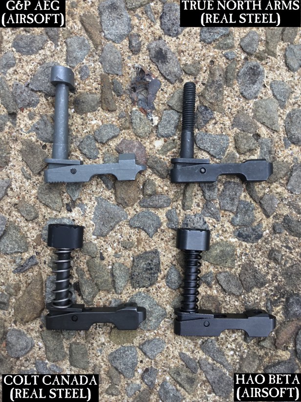 Second best in terms of quality – and a direct clone of the Colt Canada item – is the HAO. The one featured here is a beta sample, but I’ll do a short review when I receive the production version. Because HAO is a CNC company, their catch is sharply turned out compared to the softer lines of the RS (which is presumably forged) and it’s one of the giveaways that Jay spotted.