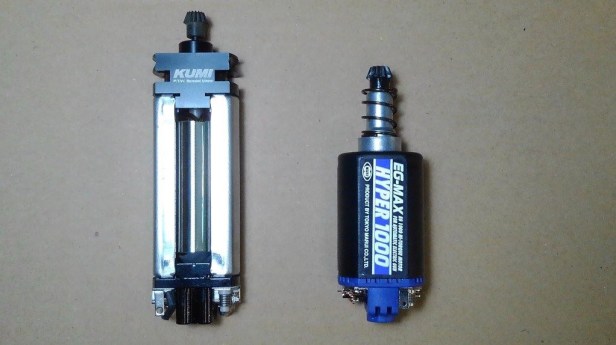 The PTW’s motor is a custom item, sized appropriately to accept many converted real steel grips. It’s a different story for most AEGs, because of their eminently sensible reliance on off the shelf motors. The drawback is their over-sized grips.