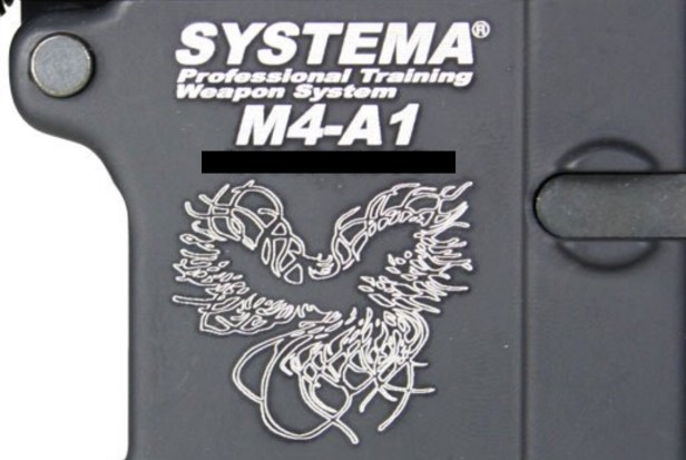 Many have wondered about Systema’s bizarre ‘Spaghetti Bird’ factory lower receiver trades. It’s supposed to be a phoenix flying from the flames, but it looks more like a seagull rolling on a bed of noodles.