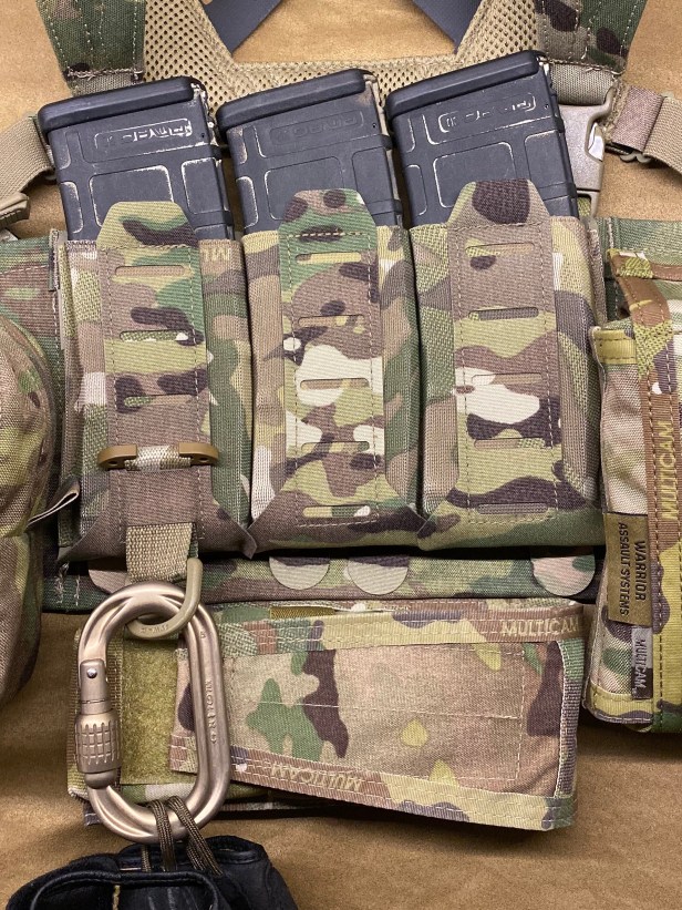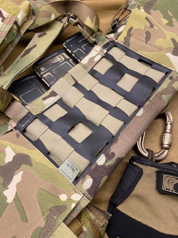It’s also incredibly thin, as can be clearly seen when attached to Crye’s Convertible Chest Rig (my review here) below.