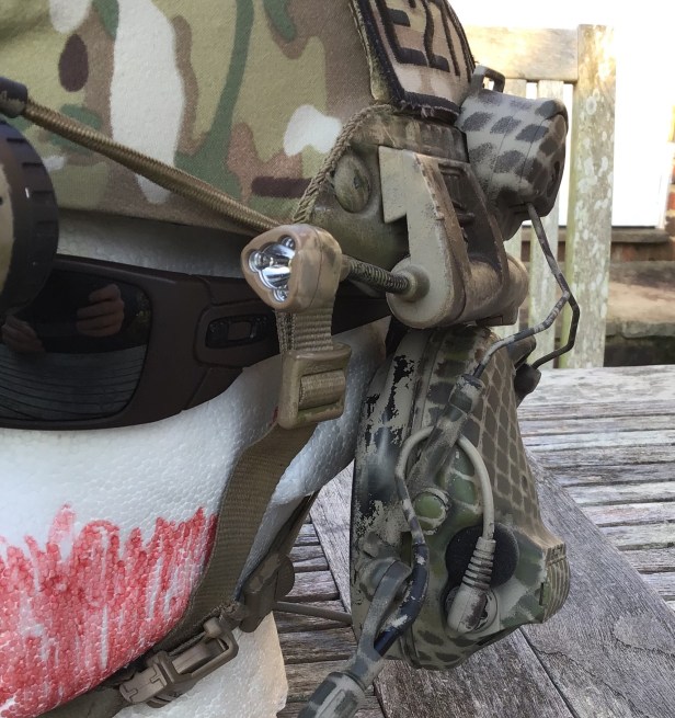 The helmet light is a Princeton Tec Charge. I use Princeton Tec stuff for Airsoft, for work and just for day to day stuff like camping. They’re one of the best brands going in terms of illumination.