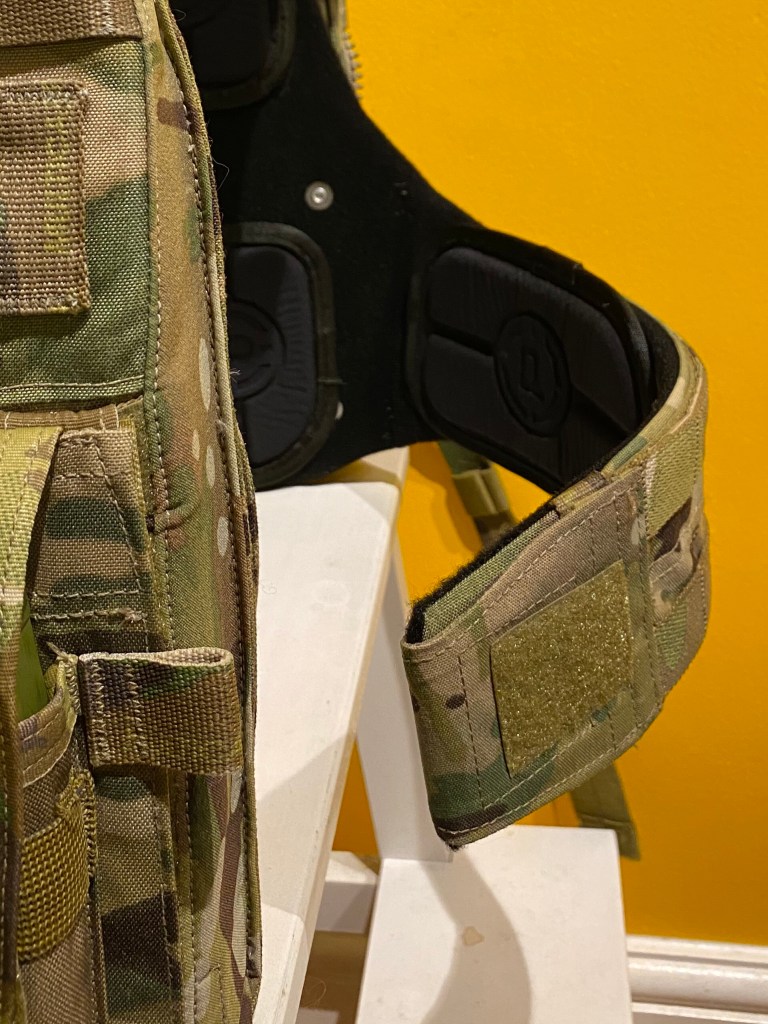 Front plate bag height is adjusted via velcro at the shoulders, where it connects to the harness. The AVS’ highly distinctive QD buckle (a blessing compared to carriers donned overhead, like the JPC) can be be positioned on either shoulder.