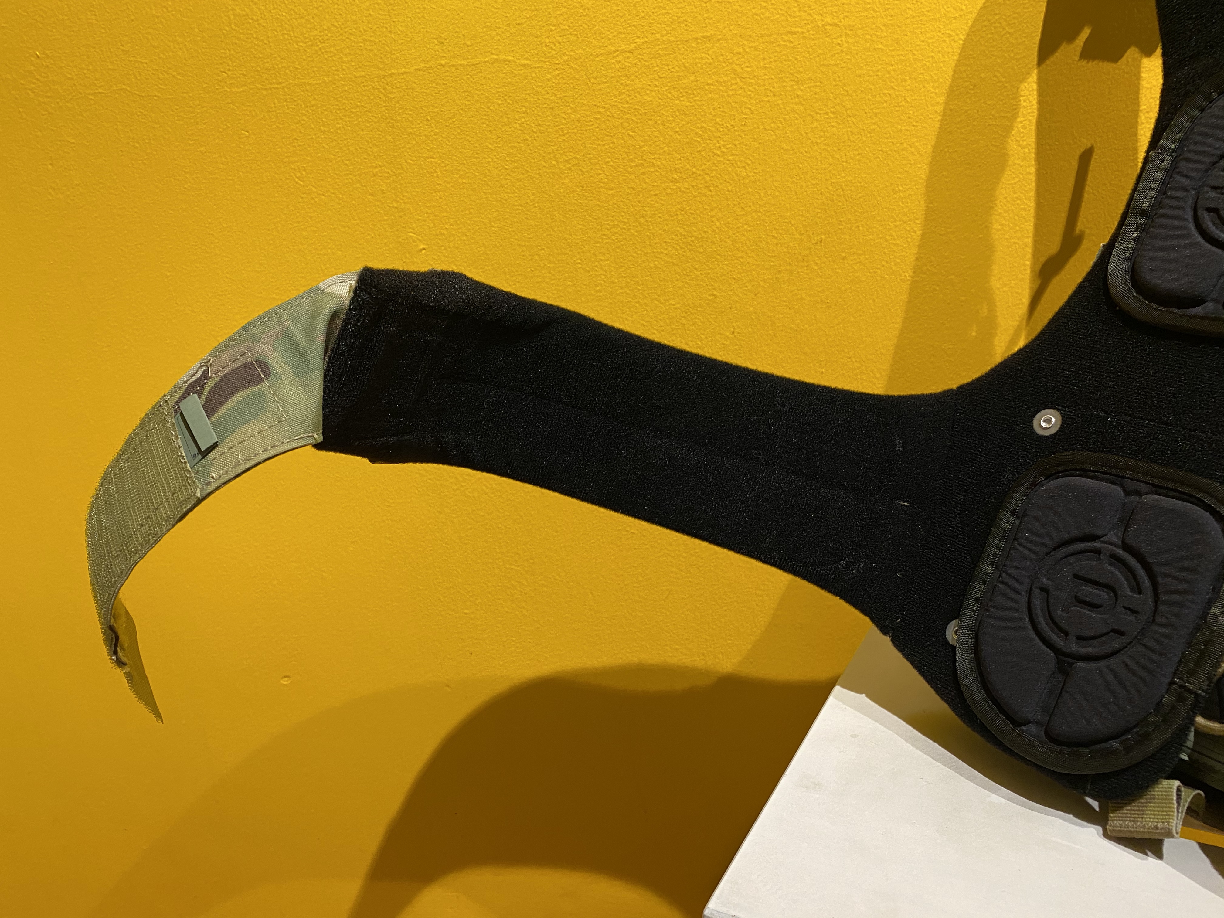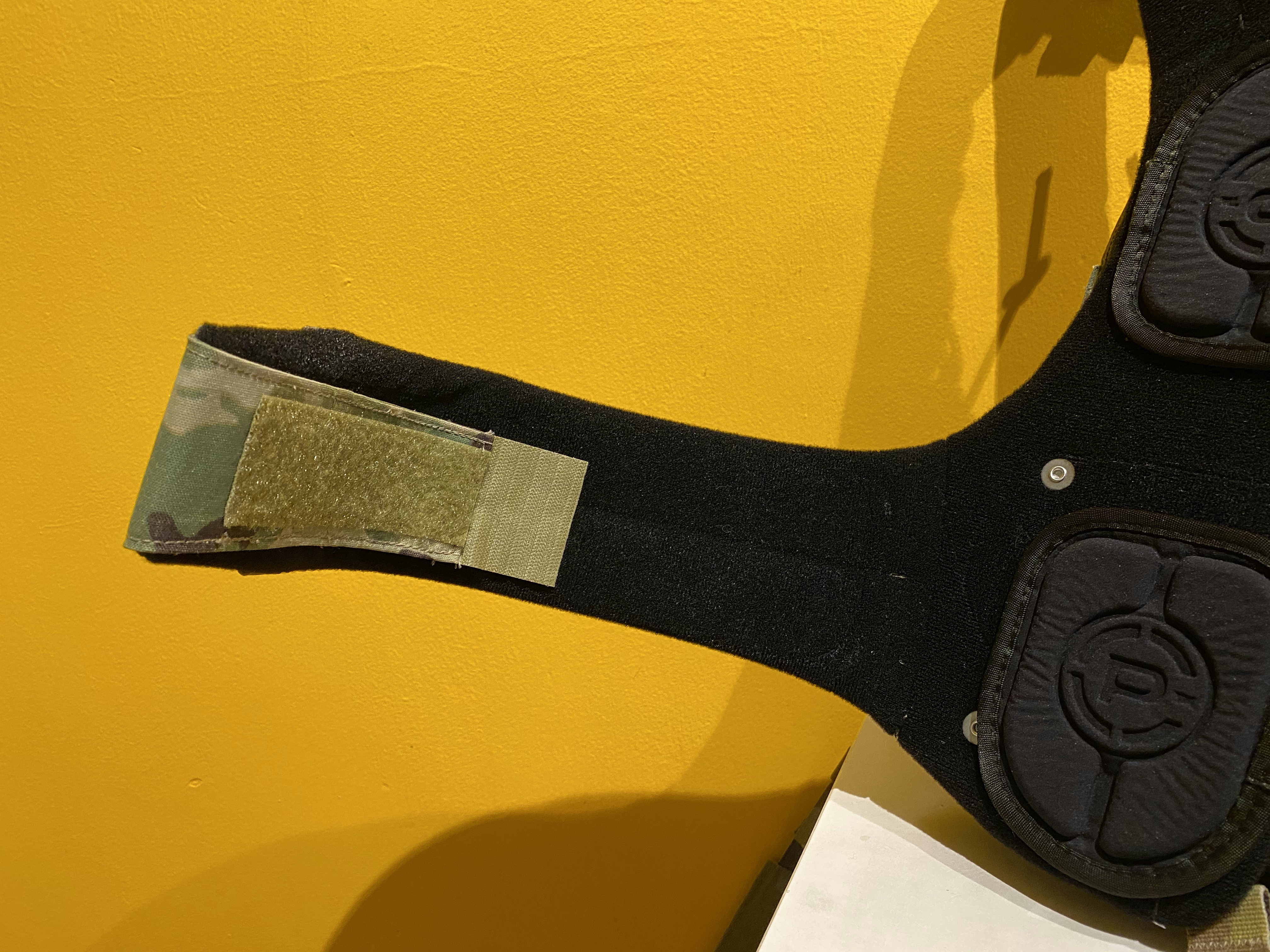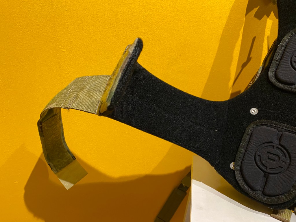 The harness is lined with Crye’s familiar One Wrap style loop. This can be used to attach items such as the hook backed AVS Harness Pad Set – as installed here. The pads create air channels for breathability and can be arranged as comfort requires.