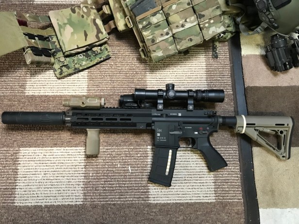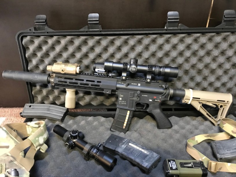 Once built I immediately noticed the excellent handling of Slayderaider’s choices (even though I don’t like the TangoDown grip). As a whole, this 416 feels ergonomic and is well balanced, despite the hulking great scope and additional red dot.