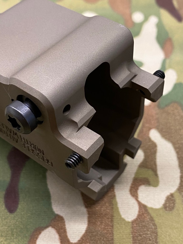In any single batch – let alone batches which are well over six months apart – you will see variation in tanodize. The real thing isn’t like the glitter paint VFC and TM use on their 416A5 and Delta 416, respectively, to represent RAL8000 ano. Also, it’s not the same as anodising black or shades therein, because it’s an unstable process.