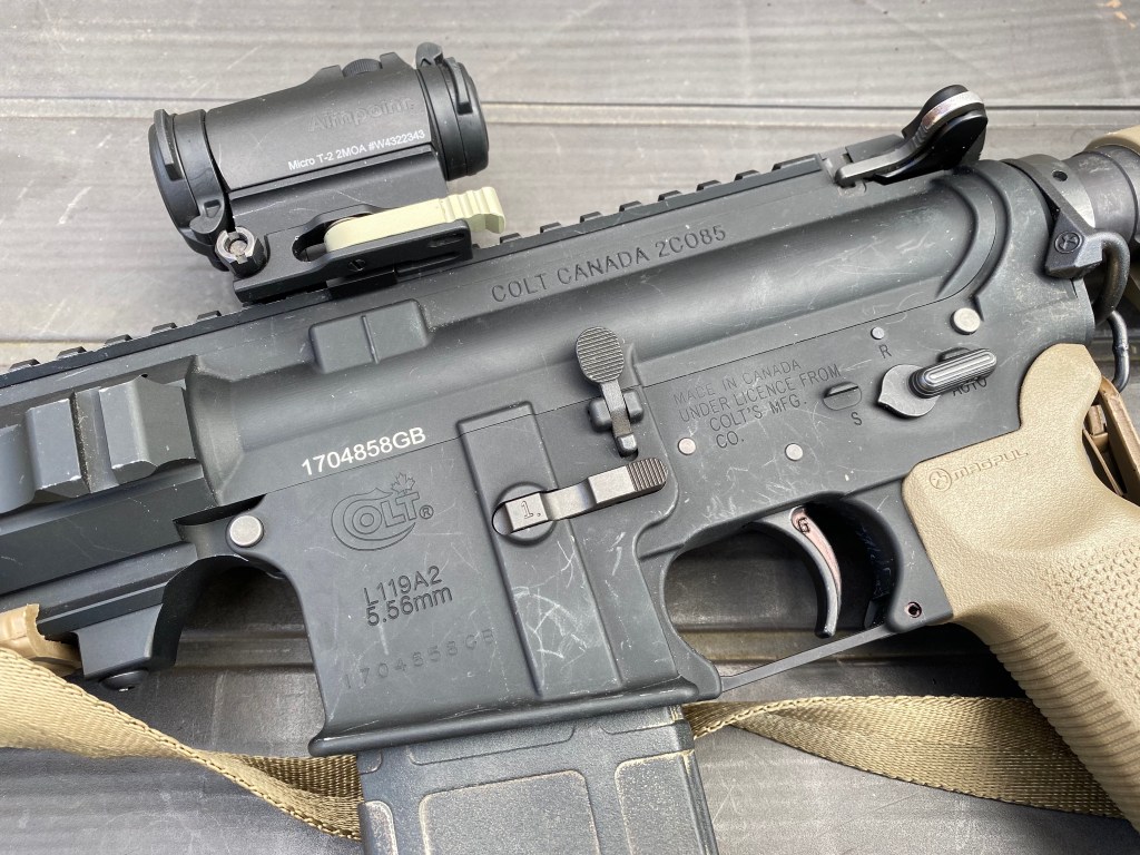 This is because the RS catch is harsh as hell and made changing mags a lot slower. RS Pmag conversions for PTW exhibit a shoulder at the mouth of the mag shell. The rather unconventional Colt Canada mag catch likes to conflict with it, a little while before the mag locks into place – so it’s less smooth movement and more of a wiggle to get the mag to seat.