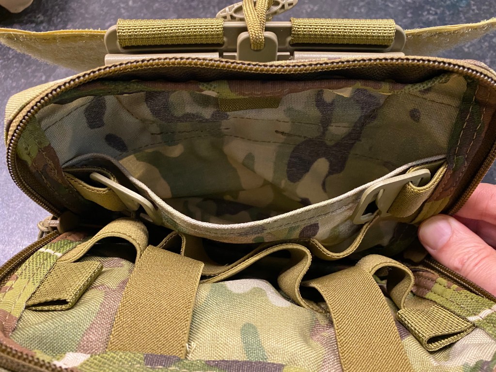 There’s a solitary hard point – a lot like the ones which mate with the G-hooks – located at the top of the front inside wall of the pouch.