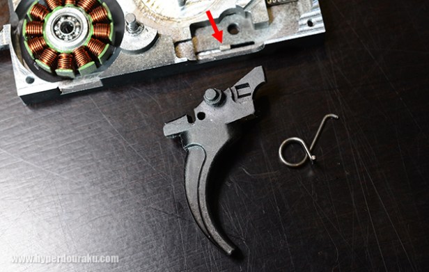 In this prototype, the trigger and trigger spring are the same as that of a conventional PTW.