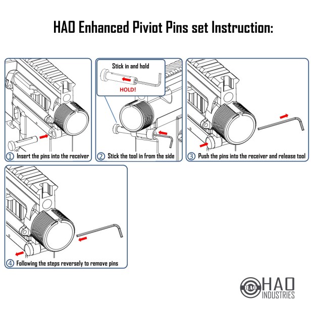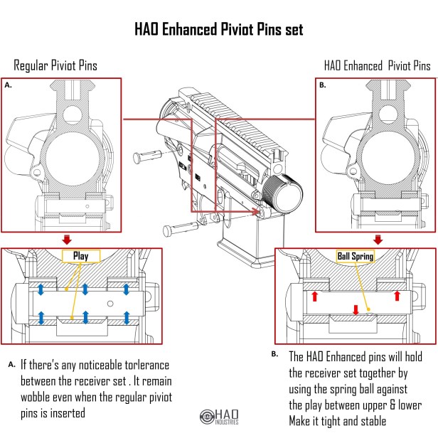 HAO sent over some details of their Enhanced Pivot and Takedown Pins, which look to be inspired by – if not an unashamed clone of – similar H&K devices.